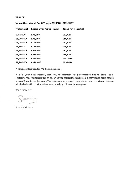 Venue Operational Profit Trigger 2019/20 £911,913*