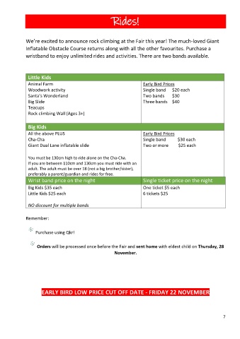 EARLY BIRD LOW PRICE CUT OFF DATE - FRIDAY 22 NOVEMBER