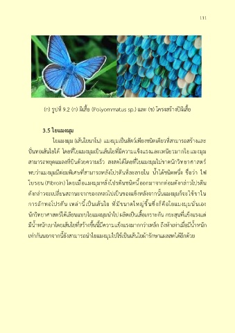 (ก) รูปที่ 9.2 (ก) ผีเสื้อ (Polyommatus sp.) และ (ข) โครงสร้างปีผีเสื้อ