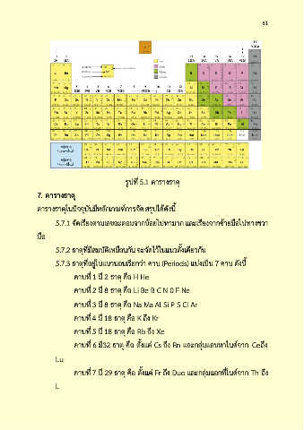 5.7.3 ธาตุที่อยู่ในแนวนอนเรียกว่า คาบ (Periods) แบ่งเป็น 7 คาบ ดังนี้