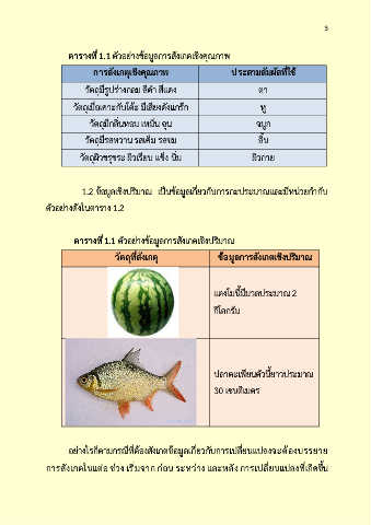 ตารางที่ 1.1 ตัวอย่างข้อมูลการสังเกตเชิงปริมาณ