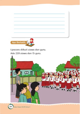 Ayo Berlatihh Upacara diikuti siswa dan guru. Ada 239 siswa dan 15 guru. 120 Buku Siswa SD/MI Kelas II