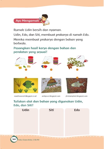 Udin, Edo, dan Siti, membuat prakarya di rumah Edo.
