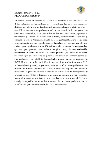 millones de refugiados), la pobreza, entre otros. Con tantos problemas que