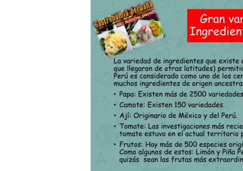 • Papa: Existen más de 2500 variedades registradas de papas nativas