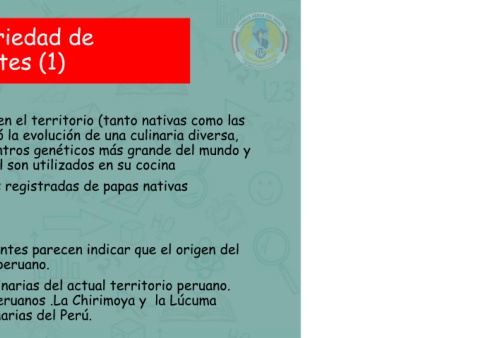 • Papa: Existen más de 2500 variedades registradas de papas nativas
