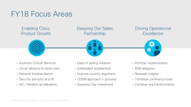 • ACI, Tetration acceleration • Business Dev investment • Continue org transformation