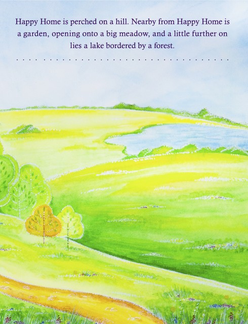 Happy Home is perched on a hill. Nearby from Happy Home is a garden, opening onto a big meadow, and a little further on lies a lake bordered by a forest. . . . . . . . . . . . . . . . . . . . . . . . . . . . . . . . . . .