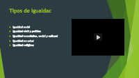 Tipos de Igualdad Igualdad social Igualdad civil y política Igualdad económica, social y cultural Igualdad en salud Igualdad religiosa