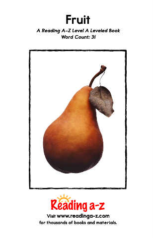 Fruit LEVELED BOOK • A A Reading A–Z Level A Leveled Book Word Count: 31 Fruit Written by Cheryl Ryan Visit www.readinga-z.com www.readinga-z.com for thousands of books and materials.
