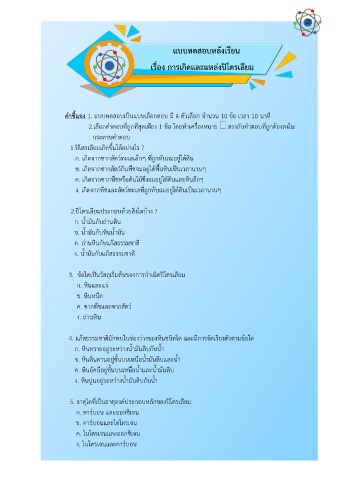 2.เลือกค าตอบที่ถูกที่สุดเพียง 1 ข้อ โดยท าเครื่องหมาย  ตรงกับค าตอบที่ถูกต้องลงใน