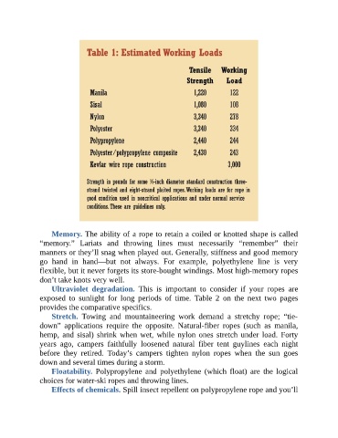 hemp, and sisal) shrink when wet, while nylon ones stretch under load. Forty