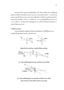 (ข) การเกิดภาพเมื่อวัตถุอยู่ห่างจากเลนส์นูนที่ระยะใกล้กว่าความยาวโฟกัส