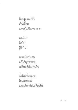 ไกลสุดขอบฟ้า เกินเอื้อม แต่อยู่ในจินตนาการ มองไป คิดไป รู้สึกไป ทะเลมียาวิเศษ แก้ได้ทุกอาการ เปลี่ยนสีสันภายใน สิ่งไม่ดีทั้งหลาย โยนลงทะเล และเลิกกลับไปคิดเสีย 115 114 พีร 115