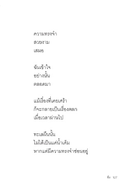 ความทรงจ�า สวยงาม เสมอ ฉันเข้าใจ อย่างนั้น ตลอดมา แม้เรื่องที่เคยเศร้า ก็จะกลายเป็นเรื่องตลก เมื่อเวลาผ่านไป ทะเลผืนนั้น ไม่ได้เป็นแค่น�้าเค็ม หากแต่มีความทรงจ�าซ่อนอยู่ 127 126 พีร 127