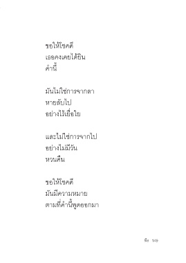 ขอให้โชคดี เธอคงเคยได้ยิน ค�านี้ มันไม่ใช่การจากลา หายลับไป อย่างไร้เยื่อใย และไม่ใช่การจากไป อย่างไม่มีวัน หวนคืน ขอให้โชคดี มันมีความหมาย ตามที่ค�านี้พูดออกมา 149 148 พีร 149