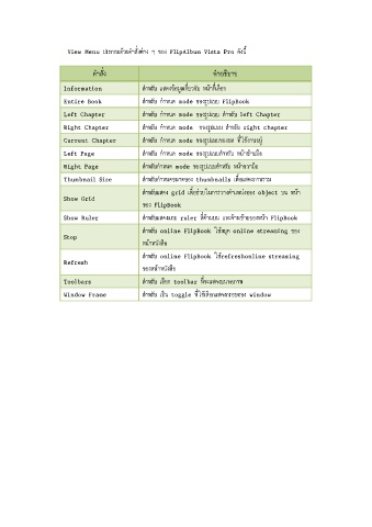 View Menu ประกอบดวยคําสั่งตาง ๆ ของ FlipAlbum Vista Pro ดังนี้
