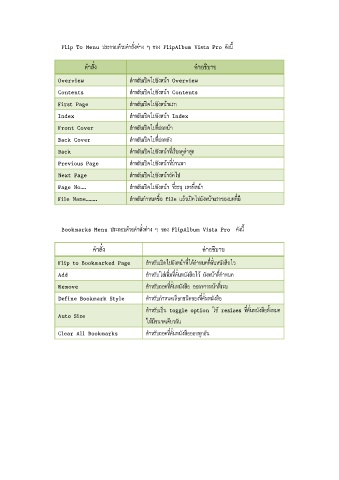 Flip To Menu ประกอบดวยคําสั่งตาง ๆ ของ FlipAlbum Vista Pro ดังนี้