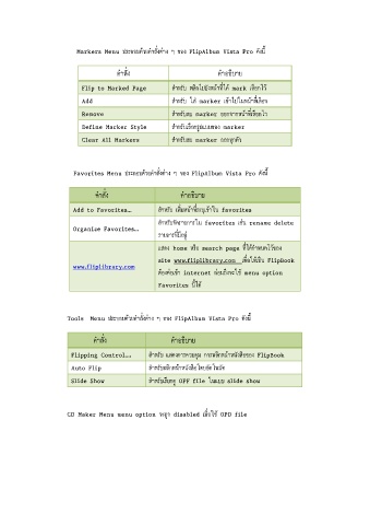 Markers Menu ประกอบดวยคําสั่งตาง ๆ ของ FlipAlbum Vista Pro ดังนี้
