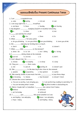 เฉลยแบบฝึกหัดเรื่อง Present Continuous Tense