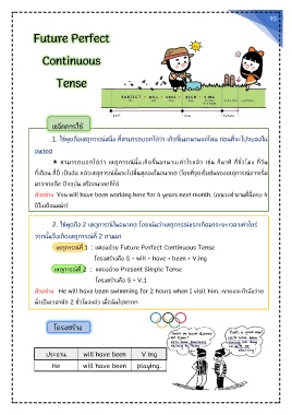 ตัวอยาง He will have been swimming for 2 hours when I visit him. เขาคงจะกําลังวาย