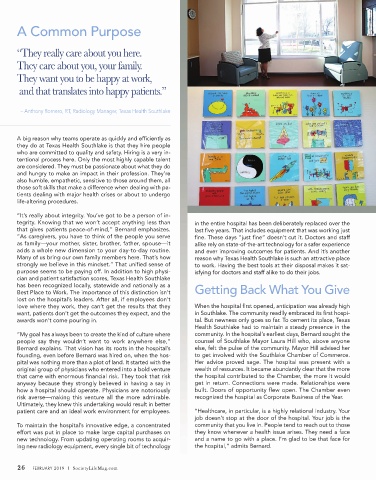want, patients don’t get the outcomes they expect, and the in Southlake. The community readily embraced its first hospi-