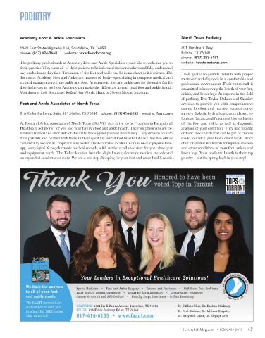 Healthcare Solutions” for you and your family’s foot and ankle health. Their six physicians are ex- analyses of your condition. They also provide