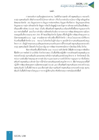 สังคมของจังหวัด เช่น ข้อมูลประชากร ข้อมูลภาคประชาสังคม ข้อมูลภาคีเครือข่าย ข้อมูลทุนทางสังคม
