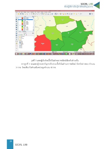 รูปที่ 7 แสดงผู้เจ็บป่วยเรื้อรังในต าบลราชสถิตย์เทียบกับต าบลอื่น จากรูปที่ 5 จะแสดงผู้ประสบปัญหาเจ็บป่วยเรื้อรังในต าบลราชสถิตย์ จังหวัดอ่างทอง จ านวน 14 ราย โดยเทียบกับต าบลอินทประมูลจ านวน 48 ราย 29