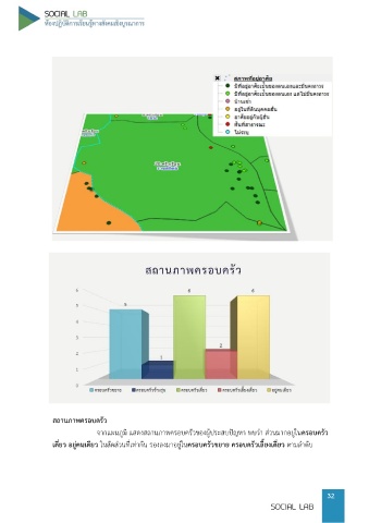 สถานภาพครอบครัว จากแผนภูมิ แสดงสถานภาพครอบครัวของผู้ประสบปัญหา พบว่า ส่วนมากอยู่ในครอบครัว เดี่ยว อยู่คนเดียว ในสัดส่วนที่เท่ากัน รองลงมาอยู่ในครอบครัวขยาย ครอบครัวเลี้ยงเดี่ยว ตามล าดับ 32