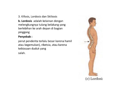 3. Kifosis, Lordosis  adalah b. Lordosis  melengkungnya  arah  ke berlebihan  pinggang  : Penyebab  kebiasaan duduk yang  salah.
