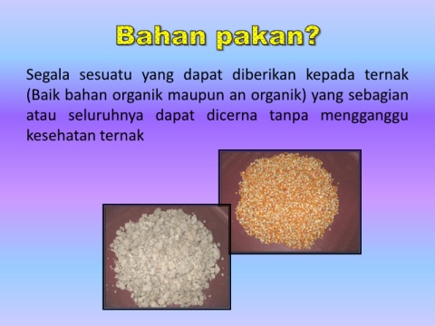Segala sesuatu yang dapat diberikan kepada ternak (Baik bahan organik maupun an organik) yang sebagian atau seluruhnya dapat dicerna tanpa mengganggu kesehatan ternak
