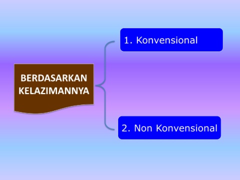 1. Konvensional BERDASARKAN KELAZIMANNYA 2. Non Konvensional