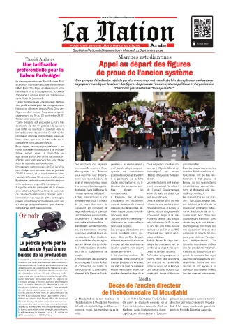 nistre saoudien de l'Energie se déclarant favorable et d'activistes du hirak, se ont battu le pavé de l’avenue jusqu’au cours de la Révolu- cession, ils ont appelé à la