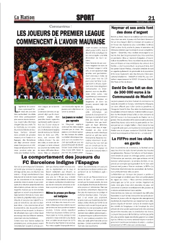 précédents jours, certains joueurs avaient M€ devant le Real Madrid et la Juventus). égoïsme ». Certains se sentiront probable- gravement touchés par les baisses de salaire », explique