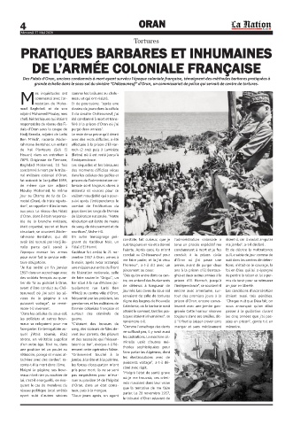 Des Fidaïs d’Oran, anciens condamnés à mort ayant survécu l'époque coloniale française, témoignent des méthodes barbares pratiquées à