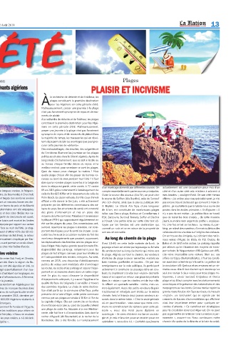 espaces littoraux ont été impactés et plus qui note que la baisse de la fréquentation mée comme avant. en force des plages de Mostaganem, Oran et Ain-Temouchent s'explique par l'as- nombreux désagréments que posaient, auparavant, Au long du chemin de la plage naux venus d’Alger, de Blida, de Tizi Ouzou, de