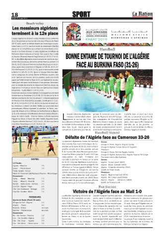 cains-2019 au Maroc (19-31 août), en la 1re journée. Ce bon résultat a per- 26 août. Alors que l’Algérie s’est as-