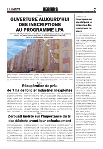 M’hamedi,s’inscrit dans le cadre s’agit de 3,02 ha dans la com- les bénéficiaires n’ont pas res- en présence de tous les respon- rer le rythme de réalisation pour livrer le