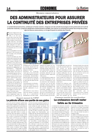 production nationale, a proposé la désignation d'administrateurs qualifiés, pour assurer la continuité de la gestion des entreprises privées,