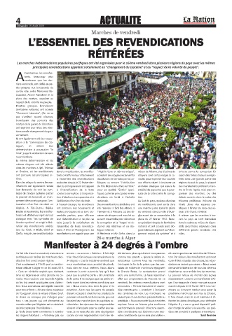 C’est exactement à 11h30 que la manifes- nous manifestons sous un soleil de plomb, c’est après la fin de la prière que des cen- ciations ne seront que vaines. « Nous avons