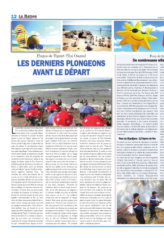 profiterai jusqu’au dernier jour de cette am- chés sous l’eau. Du haut du pic, même si la partagé par le lieutenant Mohamed Micha- que de quelques secondes pour nous voir in- née, à quoi bon se bagarrer.” qu’ailleurs. Une sorte de mafia organisée qui,