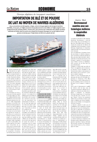 port maritime (GATMA), Smain diversification de la produc- importation cette année alimentaire. A une question que l'Algérie "compte une expérience