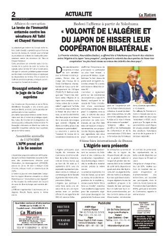 mentaire contre les sénateurs Ali Talbi et entre l'Algérie et le Japon "sera prospère", soulignant la volonté des deux parties de hisser leur