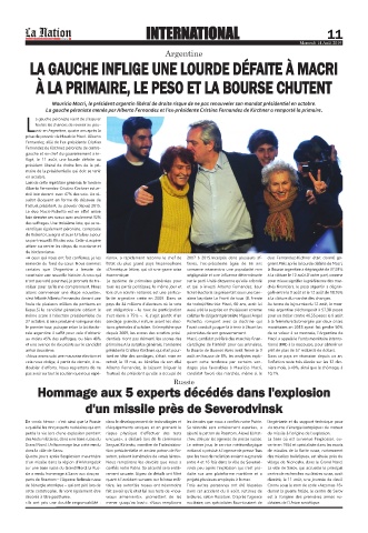 rale argentine il suffit pour cela d'obtenir  depuis 2009, les scores des scrutins prési-  péronistes de son gouvernement.  de sa valeur à sa monnaie, l'Argentine de