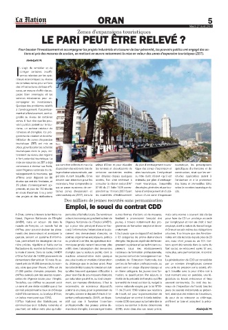 relatif à la commune, ou la wilaya d’Oran, l’emploi, comme le dispositif d’aide à l’in- de travail, est pour la permanisation de tent, alors que des milliers de travailleurs,