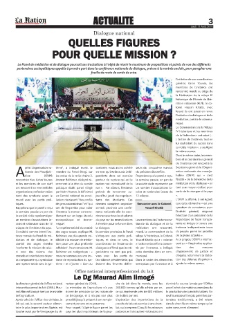 "conforter la mission de celui- adhésion". Pour convaincre, M. dialogue a affirmé que les né- tis par l’Instance, a indiqué tion des mesures