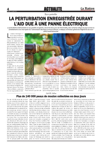 l’eau potable s’est interrompu ment, la distribution de l’eau eau potable durant l’Aid El jour sur deux, élaboré dans gistrée le jour de l’Aïd, voire