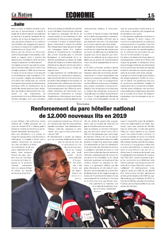 cours de l’année 2019, a affirmé jeudi à laquelle constituera "une destination tou- prix et d’amélioration des services. bouse" ayant une capacité de 500 lits,