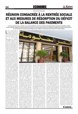 de deux exposés relatifs à la rentrée sociale 2019‐2020 et aux mesures à prendre pour la résorption du déficit de la balance des paiements
